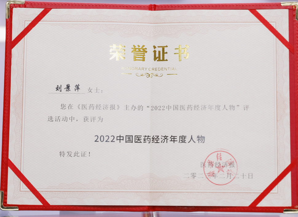 365英国上市公司药业集团董事长刘景萍当选“2022中国医药经济年度人物”